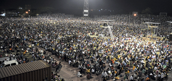 It’s Sunday night and the meeting has just finished. I have never spoken previously to such a huge crowd and we now have a big challenge. The people say, “There will be more tomorrow night!” Where will they sit or stand? On Sunday night, every inch of the national stadium was packed as far as the eye could see. People covered the surrounding hills and others stood beside their cars listening, but not seeing. They were too far away to see the giant screens, but they could hear the Message. The Spirit of the Lord came upon me and the audience listened and watched without so much of a rustle or a murmur. “It is the Lord’s doing and it is marvelous in our eyes.”