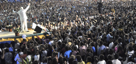 | Answer: | The local Christians tell us to expect more than 100,000 nightly. |