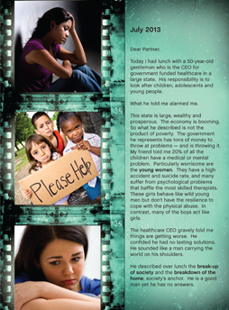 Today I had lunch with a 50-year-old gentleman who is the CEO for government funded healthcare in a large state.  His responsibility is to look after children, adolescents and young people.