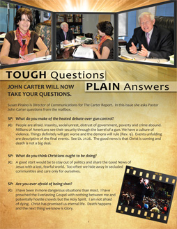 Susan Piraino is Director of Communications for The Carter Report. In this issue she asks Pastor John Carter questions from the mailbox.