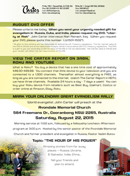VIEW THE CARTER REPORT ON 3ABN, ROKU AND YOUTUBE