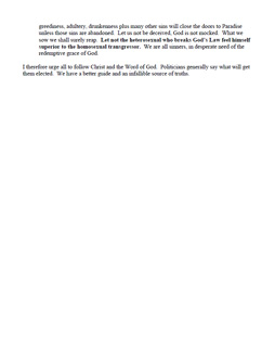 I therefore urge all to follow Christ and the Word of God. Politicians generally say what will get them elected. We have a better guide and an infallible source of truths.