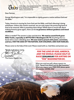 FOR THE LOVE OF GOD, AMERICA, AND THE WORLD, PLEASE HELP US RAISE $250,000.00 FOR AIRTIME ON “FOX” WASHINGTON DC.